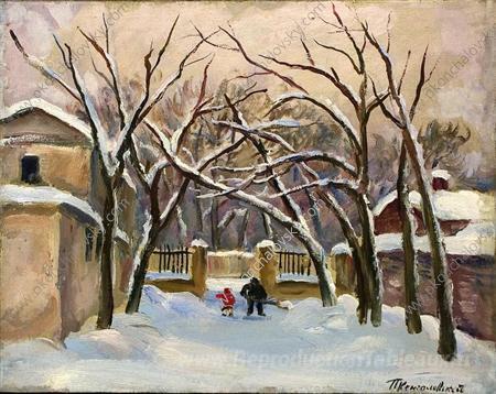 Nous vous proposons une reproduction artisanale sur toile du célèbre tableau 'Condoir de la maison de Samarins sur Spiridonovka' de Pyotr Konchalovsky, provenant du Musée de la Reproduction.