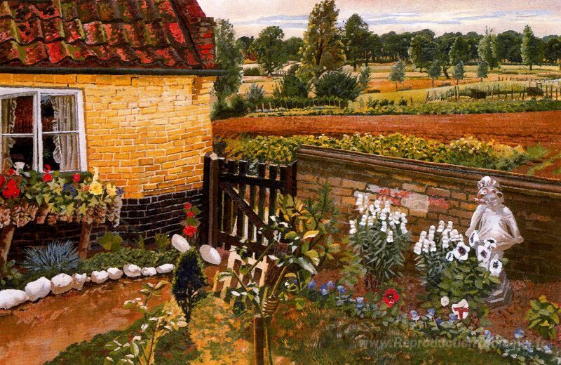 Nous vous proposons une reproduction artisanale sur toile du célèbre tableau 'Cottage à Wangford' de Stanley Spencer, provenant du Musée de la Reproduction.