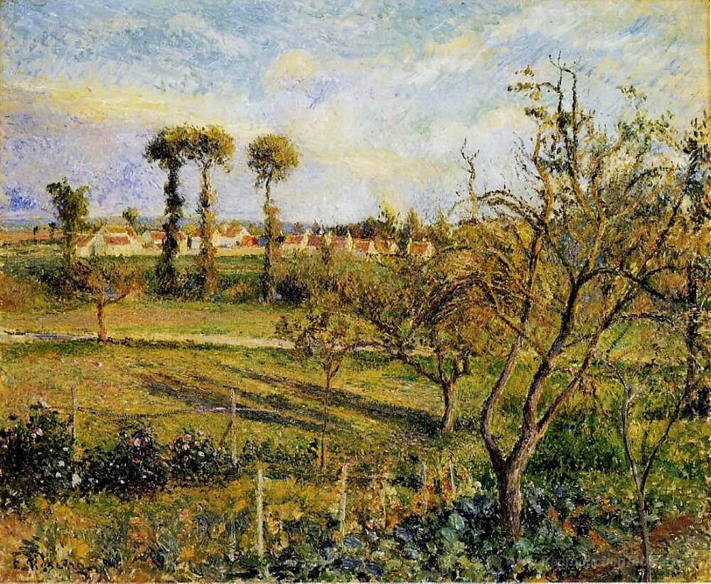 Nous vous proposons une reproduction artisanale sur toile du célèbre tableau 'Coucher de soleil à Valhermeil, près de Pontoise' de Camille Pissarro, provenant du Musée de la Reproduction.