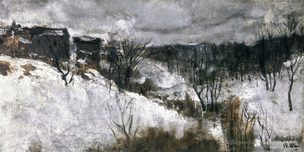 Nous vous proposons une reproduction artisanale sur toile du célèbre tableau 'Course sanglante' de John Henry Twachtman, provenant du Musée de la Reproduction.