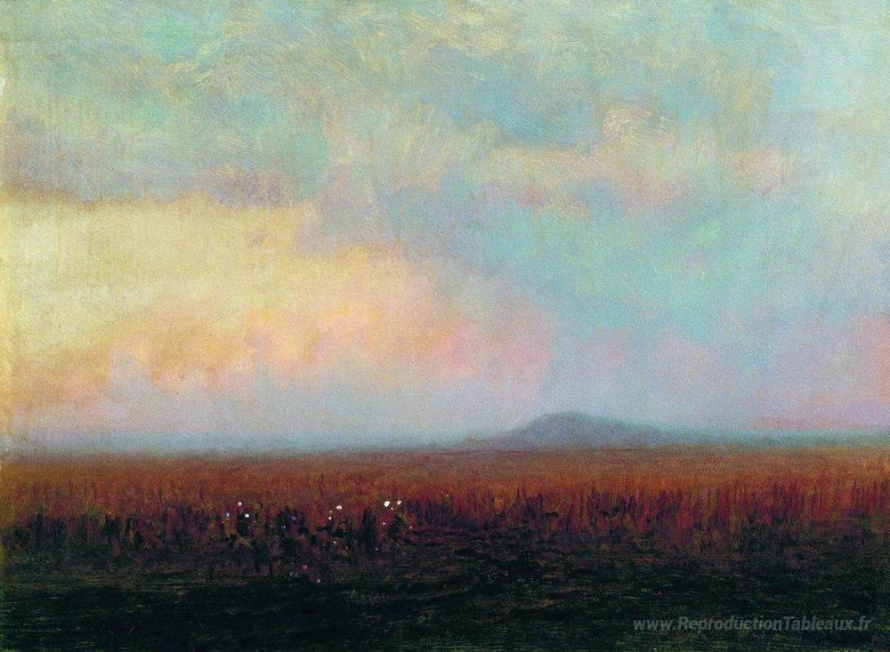 Découvrez l'élégance intemporelle de la peinture à l'huile avec notre reproduction de l'œuvre magistrale Crépuscule dans la steppe de l'artiste renommé Arkhip Kuindzhi. Ce tableau captivant, réputé pour sa palette vibrante et son atmosphère envoûtante, saisit la beauté fugace des paysages naturels. Kuindzhi, maître de la lumière, utilise des techniques subtiles de dégradé et d'éclat pour créer une profondeur qui transporte le spectateur au cœur de la steppe.