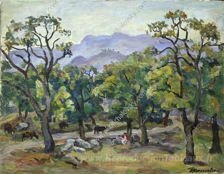 Nous vous proposons une reproduction artisanale sur toile du célèbre tableau 'Crimée. Paysage du soir (Yayla).' de Pyotr Konchalovsky, provenant du Musée de la Reproduction.