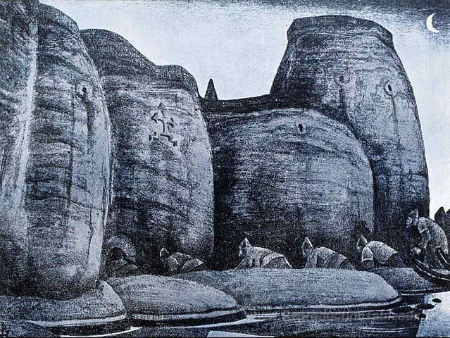 Nous vous proposons une reproduction artisanale sur toile du célèbre tableau 'Crypte' de Nicholas Roerich, provenant du Musée de la Reproduction.