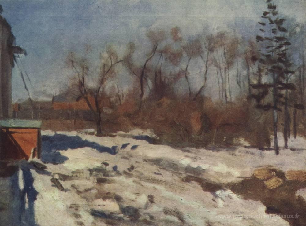 Nous vous proposons une reproduction artisanale sur toile du célèbre tableau 'Début du printemps. Jardin botanique.' de Isaac Levitan, provenant du Musée de la Reproduction.