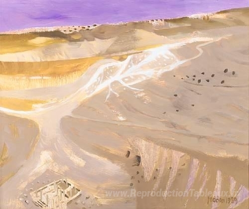 Nous vous proposons une reproduction artisanale sur toile du célèbre tableau 'Désert' de Mary Fedden, provenant du Musée de la Reproduction.