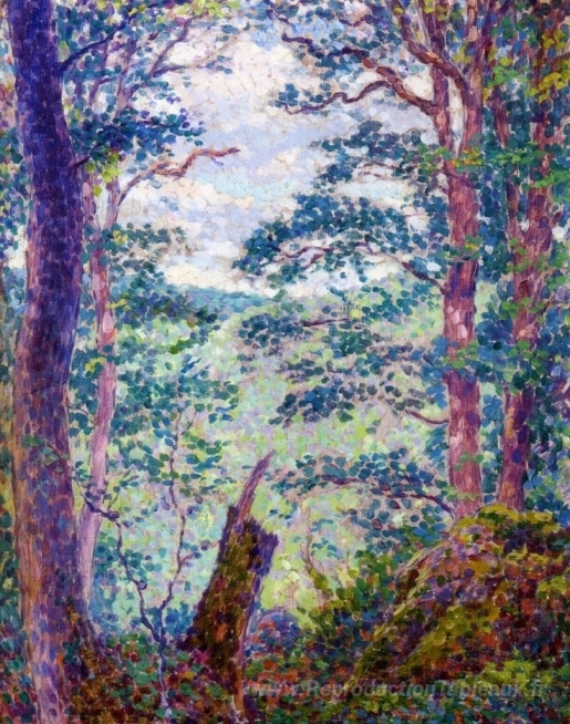 Nous vous proposons une reproduction artisanale sur toile du célèbre tableau 'Dans la foret' de Georges Lacombe , provenant du Musée de la Reproduction.