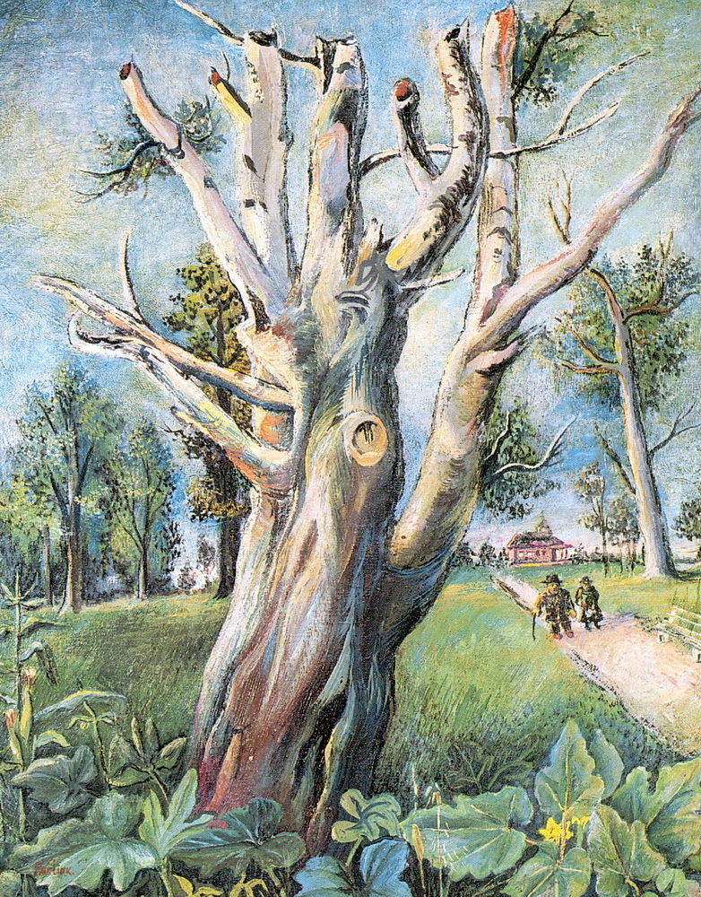 Nous vous proposons une reproduction artisanale sur toile du célèbre tableau 'Dans le parc' de David Burliuk, provenant du Musée de la Reproduction.