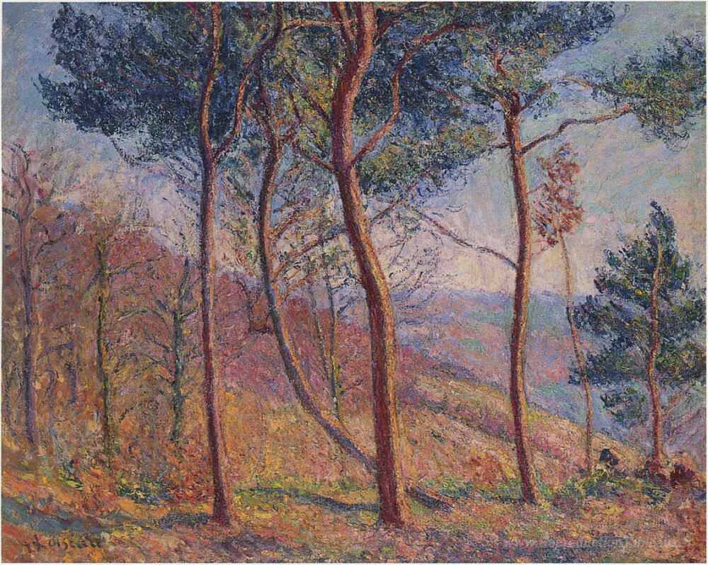 Nous vous proposons une reproduction artisanale sur toile du célèbre tableau 'Dans les montagnes' de Gustave Loiseau, provenant du Musée de la Reproduction.