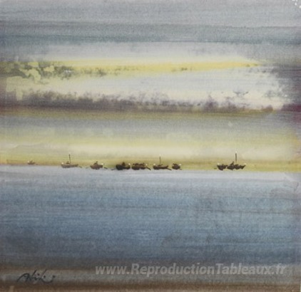 Nous vous proposons une reproduction artisanale sur toile du célèbre tableau 'Deniz Küstü' de Abidin Dino, provenant du Musée de la Reproduction.