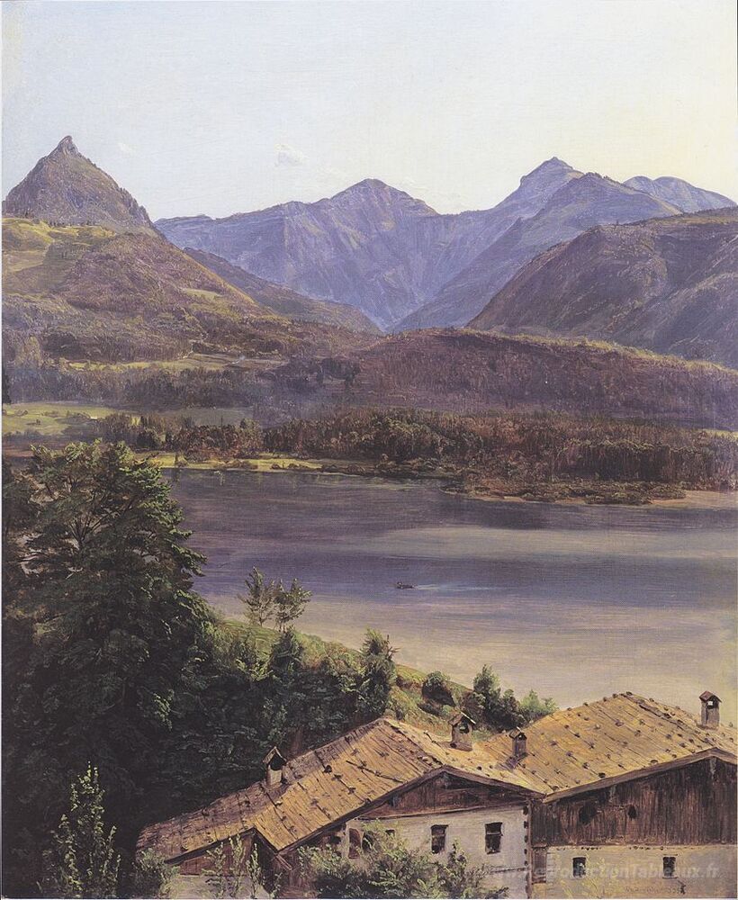 Nous vous proposons une reproduction artisanale sur toile du célèbre tableau 'Der Wolfgangsee' de Ferdinand Georg Waldmüller, provenant du Musée de la Reproduction.