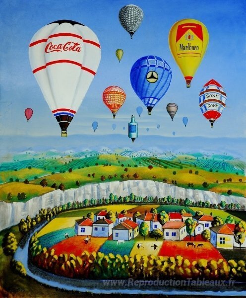Nous vous proposons une reproduction artisanale sur toile du célèbre tableau 'des ballons' de Radi Nedelchev, provenant du Musée de la Reproduction.