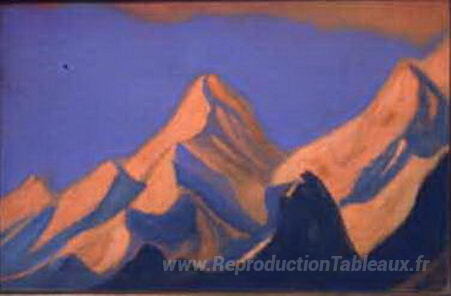 Nous vous proposons une reproduction artisanale sur toile du célèbre tableau 'Des sommets enflammés contre le ciel du soir' de Nicholas Roerich, provenant du Musée de la Reproduction.