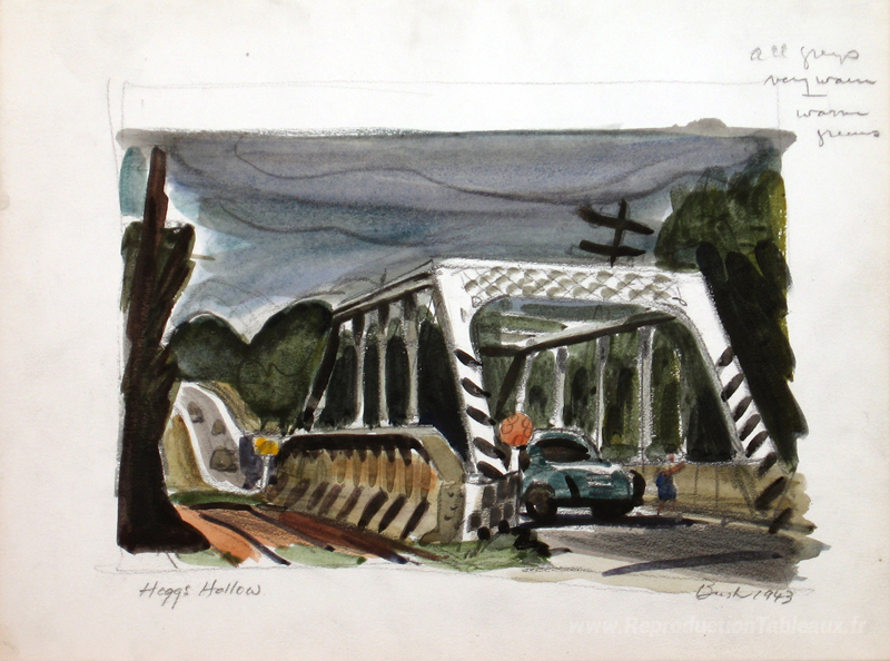 Nous vous proposons une reproduction artisanale sur toile du célèbre tableau 'Di Hogg Hollow, Toronto' de Jack Bush, provenant du Musée de la Reproduction.