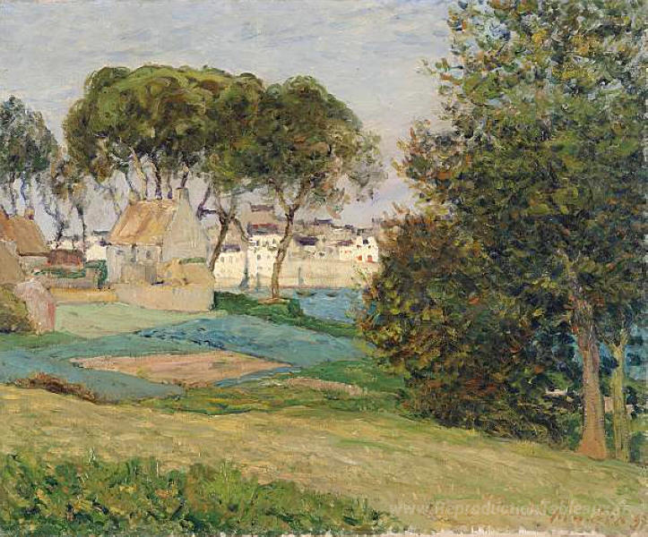 Nous vous proposons une reproduction artisanale sur toile du célèbre tableau 'Douarnez, paysage d'octobre' de Maxime Maufra, provenant du Musée de la Reproduction.