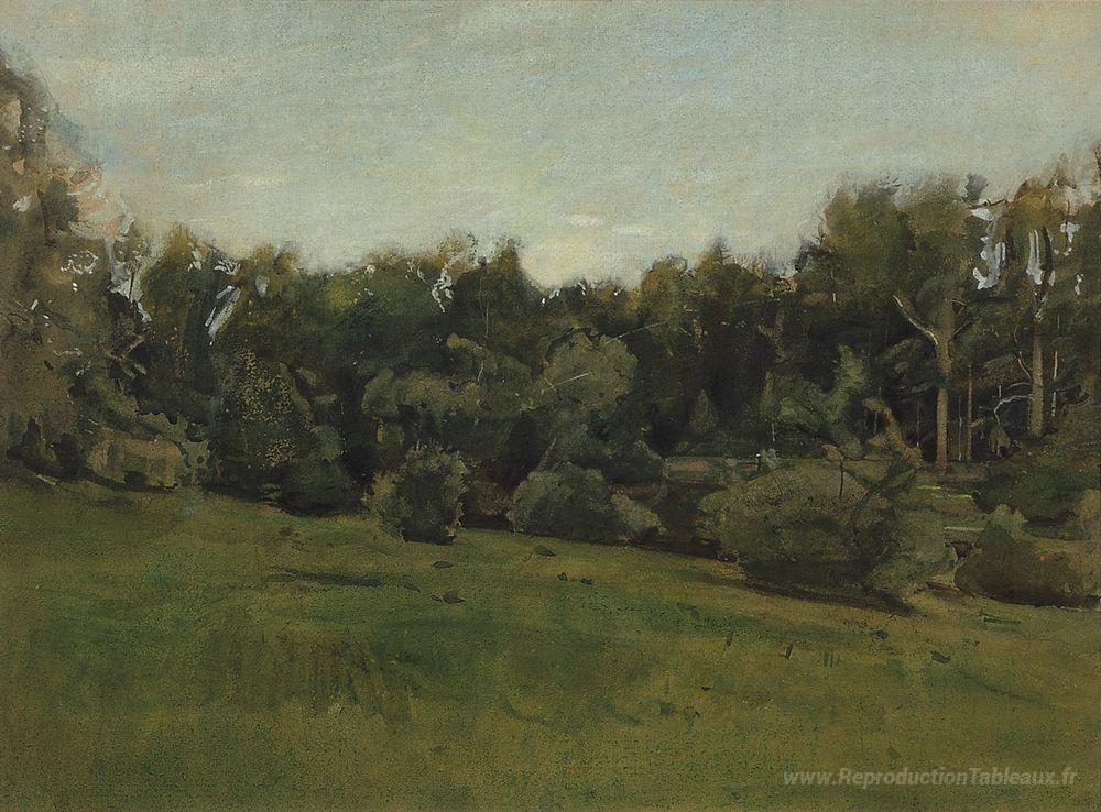 Nous vous proposons une reproduction artisanale sur toile du célèbre tableau 'Edge de la forêt. Ligovo' de Konstantin Somov, provenant du Musée de la Reproduction.