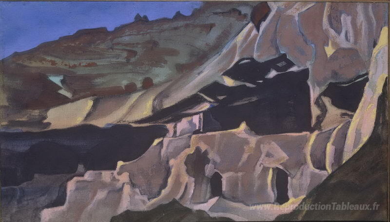 Nous vous proposons une reproduction artisanale sur toile du célèbre tableau 'Ellora' de Nicholas Roerich, provenant du Musée de la Reproduction.