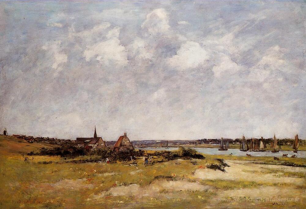 Nous vous proposons une reproduction artisanale sur toile du célèbre tableau 'Etaples, La Canache, marée haute' de Eugene Boudin, provenant du Musée de la Reproduction.