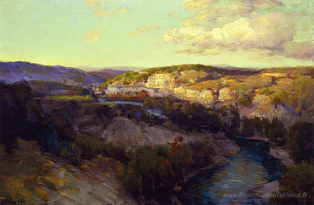 Découvrez l'univers captivant de la peinture à l'huile à travers notre sélection exceptionnelle de reproductions artistiques. Parmi ces œuvres, Falaises sur le Guadalupe, du talentueux artiste américain Robert Julian Onderdonk, se distingue par sa maîtrise des couleurs et des techniques impressionnistes. Onderdonk, reconnu pour sa capacité à capturer la lumière et la texture des paysages, offre ici une vision saisissante des côtes texanes, transformant chaque coup de pinceau en une célébration de la nature.