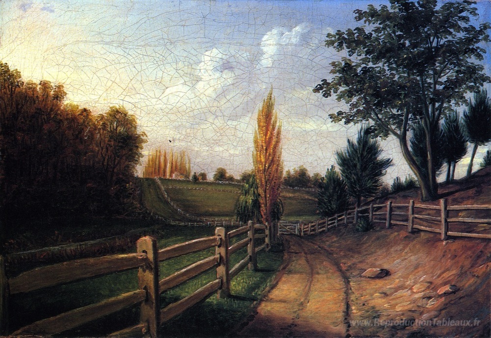 Nous vous proposons une reproduction artisanale sur toile du célèbre tableau 'Ferme de Belfield' de Charles Willson Peale, provenant du Musée de la Reproduction.
