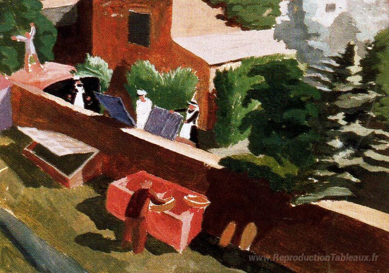 Nous vous proposons une reproduction artisanale sur toile du célèbre tableau 'Fernlea, Cookham' de Stanley Spencer, provenant du Musée de la Reproduction.