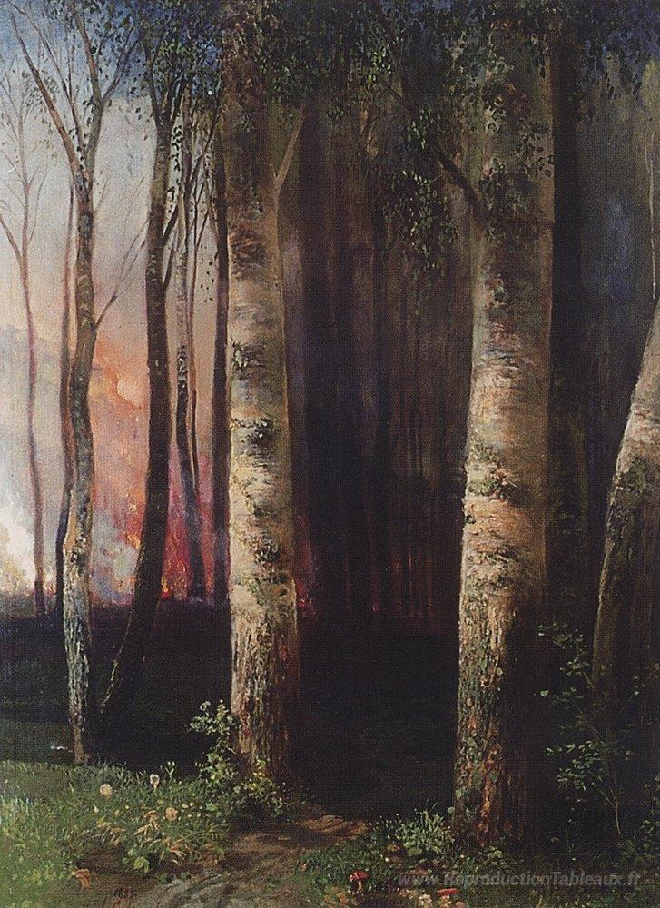Nous vous proposons une reproduction artisanale sur toile du célèbre tableau 'Feu dans les bois' de Aleksey Savrasov, provenant du Musée de la Reproduction.