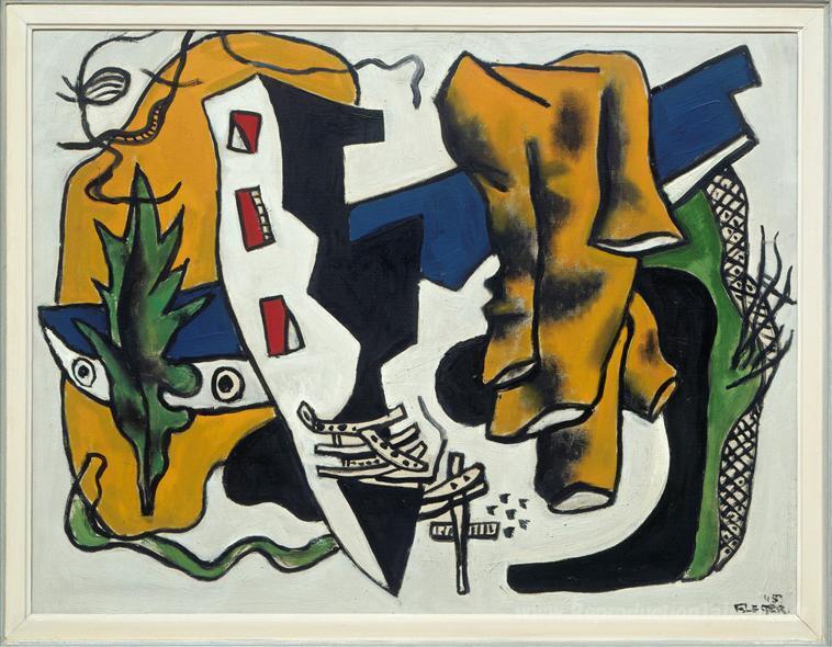 Nous vous proposons une reproduction artisanale sur toile du célèbre tableau 'Feuille verte' de Fernand Leger, provenant du Musée de la Reproduction.