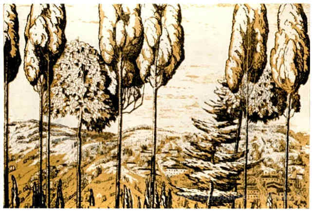 Nous vous proposons une reproduction artisanale sur toile du célèbre tableau 'Fiesole, Italie' de Anna Ostroumova-Lebedeva, provenant du Musée de la Reproduction.