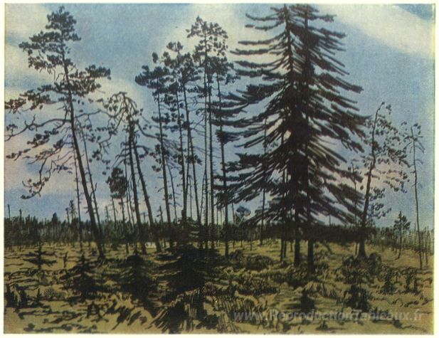 Nous vous proposons une reproduction artisanale sur toile du célèbre tableau 'Finlande avec un ciel bleu' de Anna Ostroumova-Lebedeva, provenant du Musée de la Reproduction.