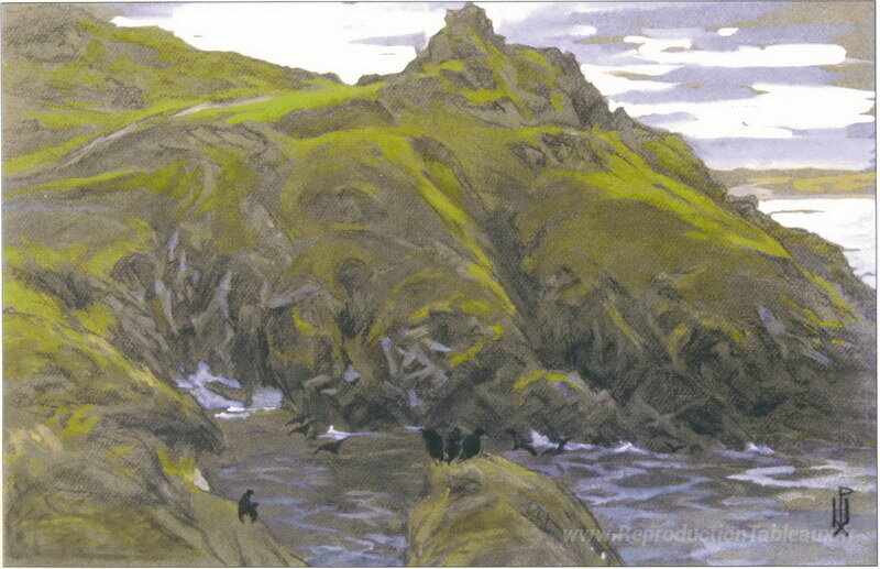Nous vous proposons une reproduction artisanale sur toile du célèbre tableau 'Fjord vert' de Nicholas Roerich, provenant du Musée de la Reproduction.