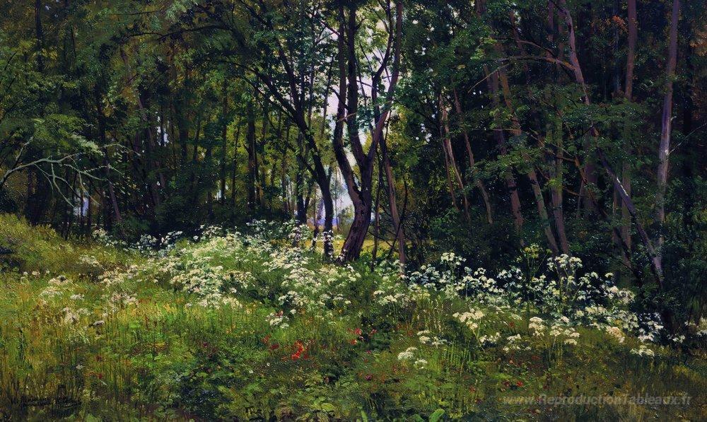Nous vous proposons une reproduction artisanale sur toile du célèbre tableau 'Fleurs sur le bord de la forêt' de Ivan Shishkin, provenant du Musée de la Reproduction.