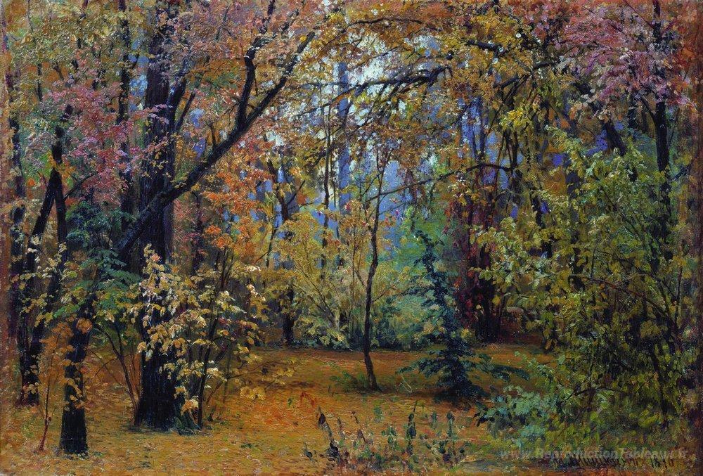 Nous vous proposons une reproduction artisanale sur toile du célèbre tableau 'Forêt d'automne' de Ivan Shishkin, provenant du Musée de la Reproduction.