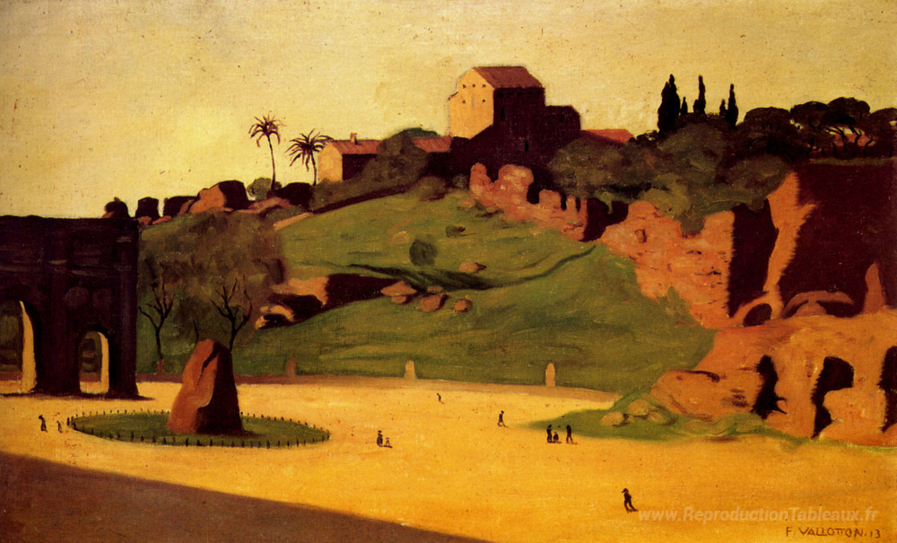 Nous vous proposons une reproduction artisanale sur toile du célèbre tableau 'Forum romain ou vu fermer celui palatin' de Felix Vallotton , provenant du Musée de la Reproduction.