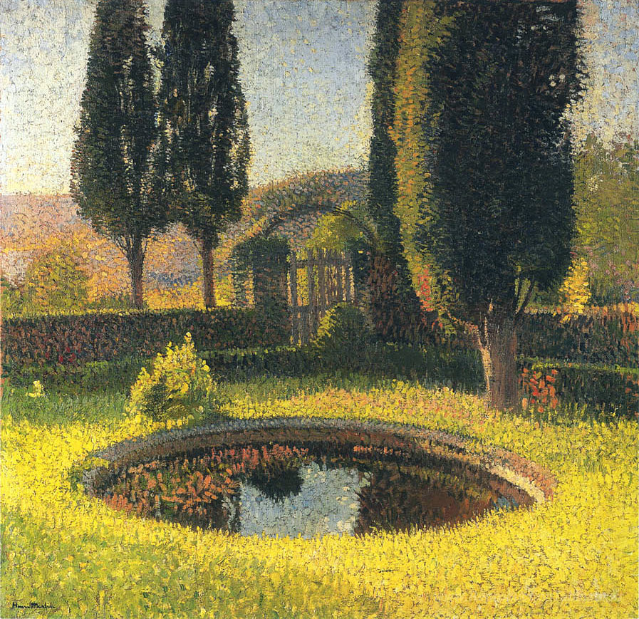 Nous vous proposons une reproduction artisanale sur toile du célèbre tableau 'Fountaine à South East Park à Marquayrol' de Henri Martin, provenant du Musée de la Reproduction.