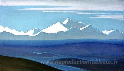 Nous vous proposons une reproduction artisanale sur toile du célèbre tableau 'Frontière du Tibet' de Nicholas Roerich, provenant du Musée de la Reproduction.