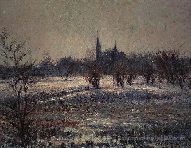 Nous vous proposons une reproduction artisanale sur toile du célèbre tableau 'Givre' de Gustave Loiseau, provenant du Musée de la Reproduction.