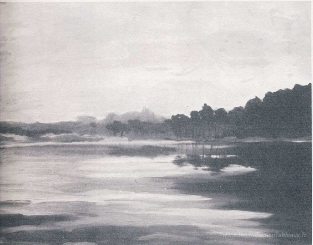 Nous vous proposons une reproduction artisanale sur toile du célèbre tableau 'Glow du soir à Mimizan' de Winston Churchill, provenant du Musée de la Reproduction.
