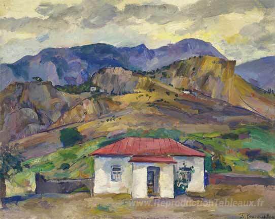 Nous vous proposons une reproduction artisanale sur toile du célèbre tableau 'Gurzuf. Paysage de montagne.' de Pyotr Konchalovsky, provenant du Musée de la Reproduction.