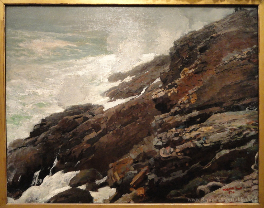 Nous vous proposons une reproduction artisanale sur toile du célèbre tableau 'Haute falaise, côte du Maine' de Winslow Homer, provenant du Musée de la Reproduction.