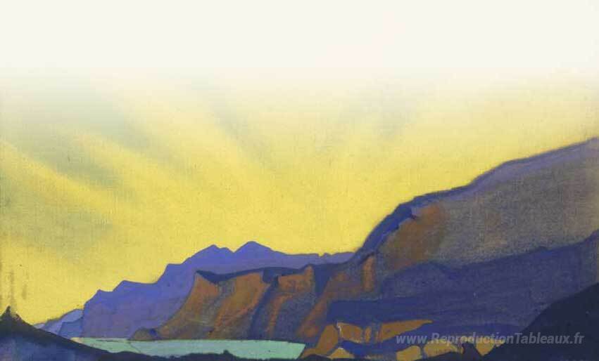 Découvrez l'univers enchanteur de la peinture à l'huile à travers notre sélection exclusive de reproductions d'œuvres d'art. Parmi elles, admirez Himalaya. Lac turquoise de l'artiste visionnaire Nicholas Roerich, dont le style unique allie romantisme et spiritualité. Roerich, célèbre pour ses paysages majestueux, nous transporte ici au cœur des montagnes, où les teintes turquoise du lac scintillent sous un ciel éclatant, créant une atmosphère de sérénité et d'évasion.