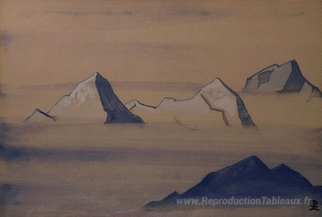 Nous vous proposons une reproduction artisanale sur toile du célèbre tableau 'Himalaya sacré' de Nicholas Roerich, provenant du Musée de la Reproduction.