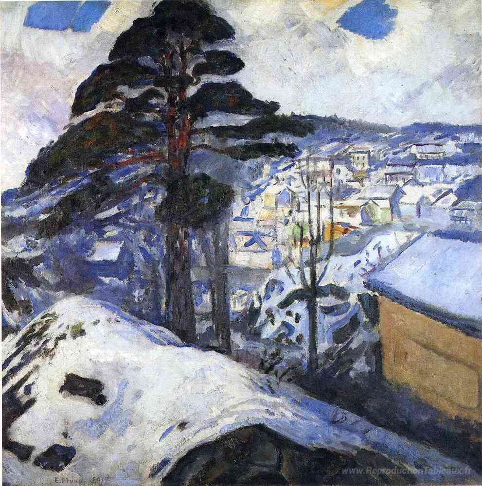 Nous vous proposons une reproduction artisanale sur toile du célèbre tableau 'Hiver, Kragero' de Edvard Munch, provenant du Musée de la Reproduction.