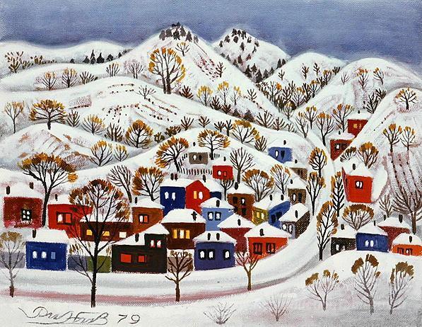 Nous vous proposons une reproduction artisanale sur toile du célèbre tableau 'Hiver' de Radi Nedelchev, provenant du Musée de la Reproduction.