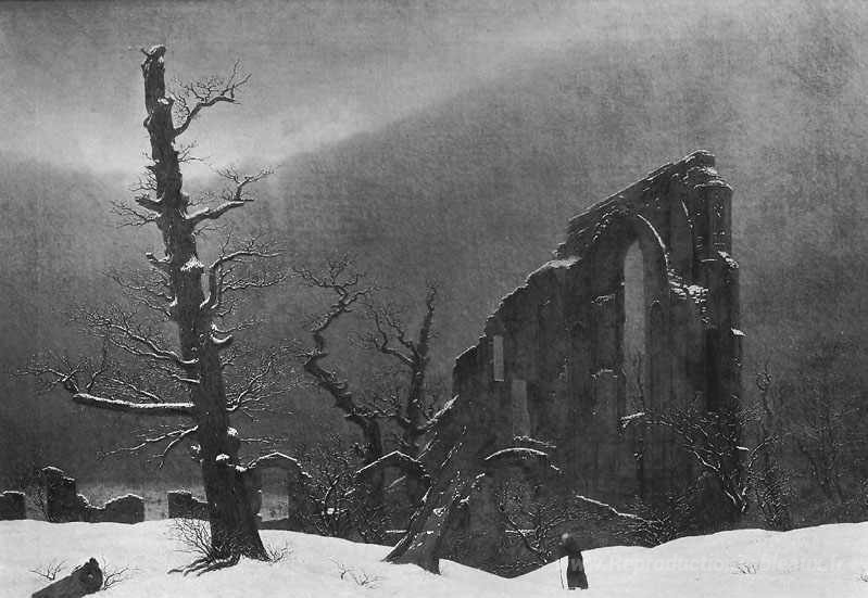 Nous vous proposons une reproduction artisanale sur toile du célèbre tableau 'Hiver' de Caspar David Friedrich, provenant du Musée de la Reproduction.