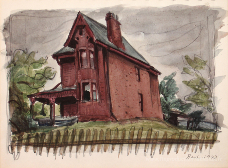 Nous vous proposons une reproduction artisanale sur toile du célèbre tableau 'House inédite, Rouge' de Jack Bush, provenant du Musée de la Reproduction.