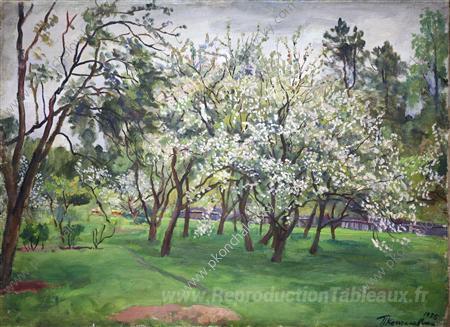 Nous vous proposons une reproduction artisanale sur toile du célèbre tableau 'Jardin en fleurs' de Pyotr Konchalovsky, provenant du Musée de la Reproduction.