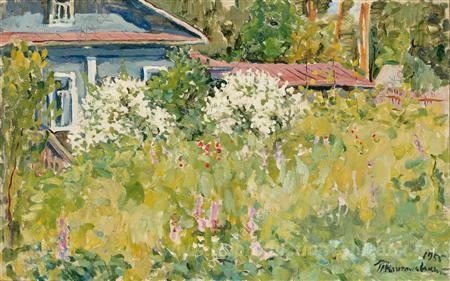 Nous vous proposons une reproduction artisanale sur toile du célèbre tableau 'Jasmin buisson' de Pyotr Konchalovsky, provenant du Musée de la Reproduction.