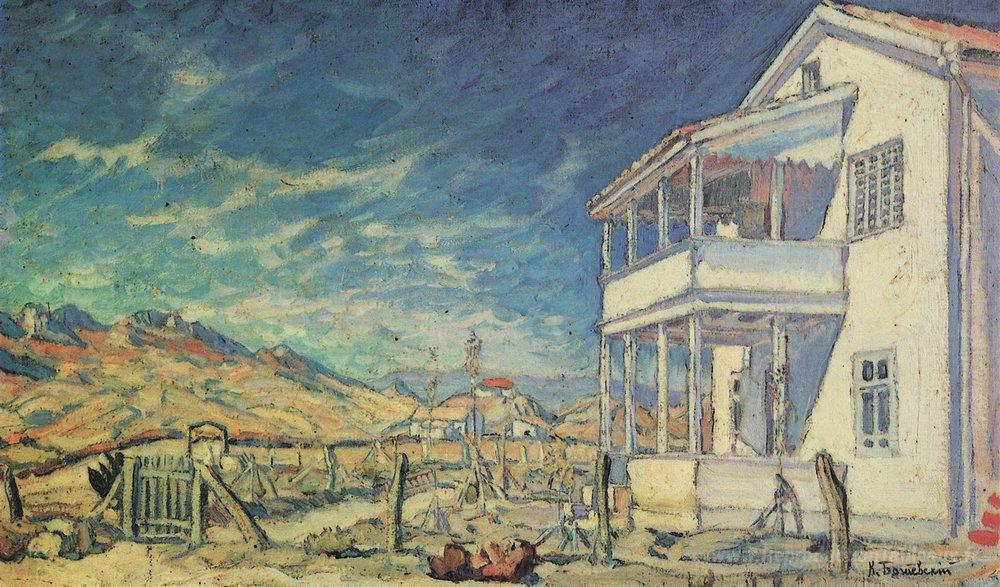 Nous vous proposons une reproduction artisanale sur toile du célèbre tableau 'Koktebel. Maison de Maximilian Voloshin.' de Konstantin Bogaevsky, provenant du Musée de la Reproduction.