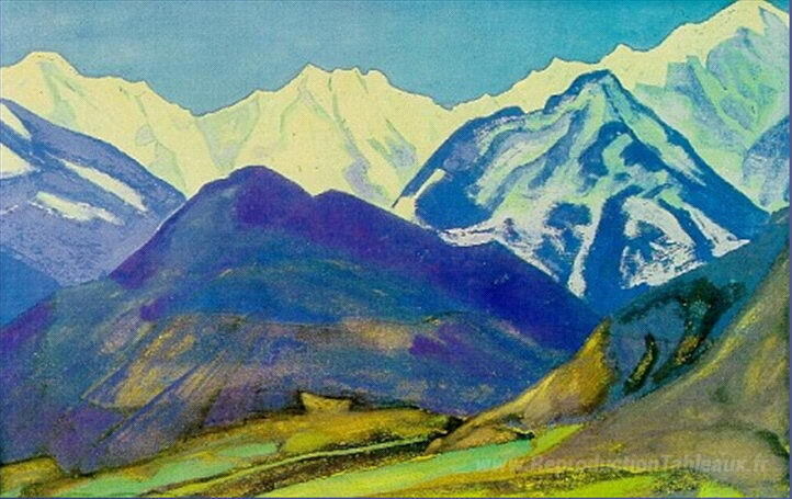 Nous vous proposons une reproduction artisanale sur toile du célèbre tableau 'Kuluta. Dobi Nulla.' de Nicholas Roerich, provenant du Musée de la Reproduction.