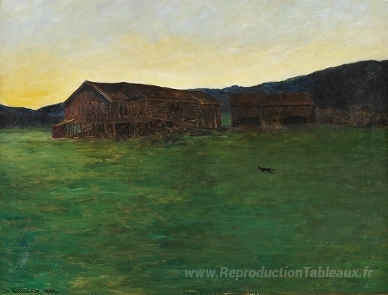 Découvrez l'envoûtante œuvre Kveld Paa Soletunet I Eggedal, réalisée par le talentueux artiste norvégien Theodor Severin Kittelsen, qui incarne l'essence même de la beauté naturelle scandinave. Ce tableau, peint à l'huile, illustre une scène paisible, où la magie crépusculaire enveloppe un paysage enchanteur. Kittelsen, maître du réalisme romantique, utilise des techniques de peinture délicates pour créer des atmosphères à la fois mystérieuses et évocatrices.
