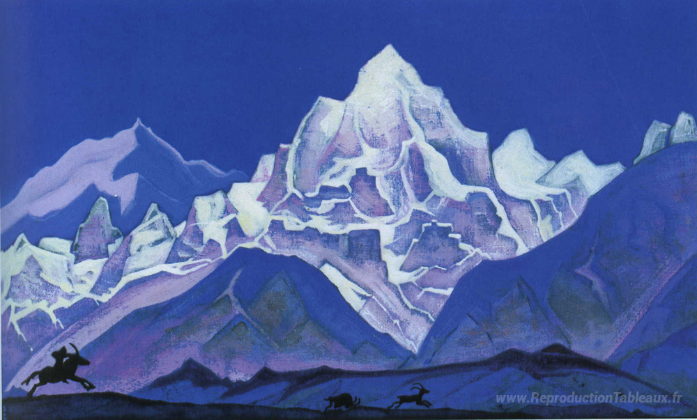 Nous vous proposons une reproduction artisanale sur toile du célèbre tableau 'La chasse' de Nicholas Roerich, provenant du Musée de la Reproduction.
